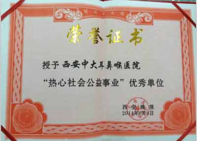 点击咨询近日,由《西安晚报》发起的【热心社会公益事业】较好单位评选活动落下帷幕,经西安晚报相关领导审定、市民积极参与,“热心社会公益事业”较好单位名单终于出炉,西安中大耳鼻喉医院荣获【热心社会公益事业】较好单位称号。