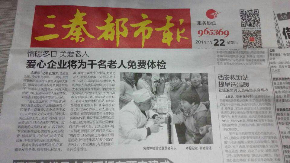 【三秦都市报】情暖冬日 关爱老人——爱心企业将为千名老人免费体检
