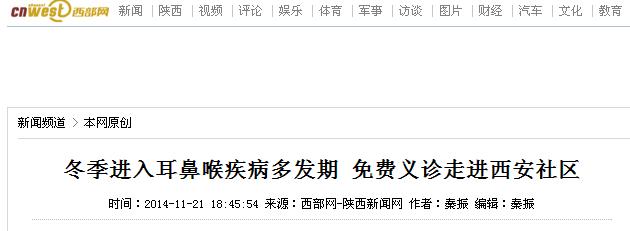【西部网】冬季进入耳鼻喉疾病多发期 免费义诊走进西安社区