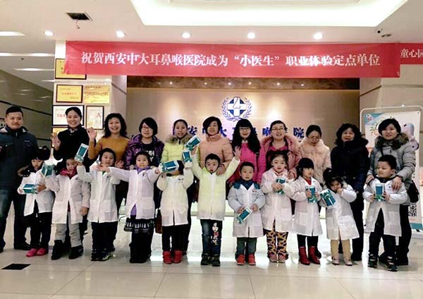 点击咨询 2015年12月5日,西安中大耳鼻喉医院举办了首次“小医生”职业体验活动,学生家长满意而归,社会反响十分热烈;2015年12月26日,顺应群众意见,西安中大耳鼻喉医院与童心园亲子体验营再次合作,举办了场更加精彩更有意义的耳鼻喉小医生体验活动;2016年1月16日,跨过一个新年,在大家的翘首以待下,“小医生”亲子体验轮活动终于再次开课啦。