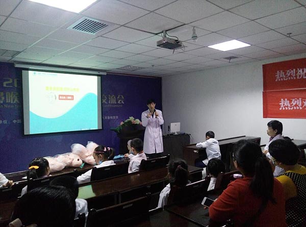 项活动是夏季耳鼻喉疾病基本知识讲课,由西安中大耳鼻喉医院员根远主任亲自授课。医生通过童趣十足的展示教案,浅显易懂的授课语言,为小朋友们讲述了一个个生活中非常实用的耳鼻喉健康基本知识。