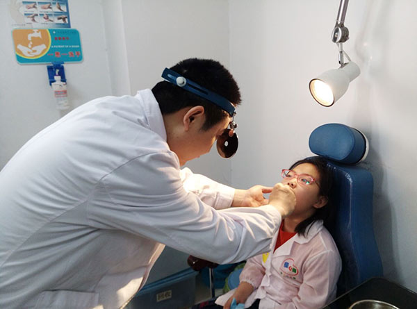 除了学习、游戏、感恩环节外,西安中大耳鼻喉医院更是贴心安排医生为小朋友们一一看诊,教小朋友测血压、进行视力检查、进行耳鼻喉常规检查,帮助小朋友们加强自我认识,排除疾病隐患。