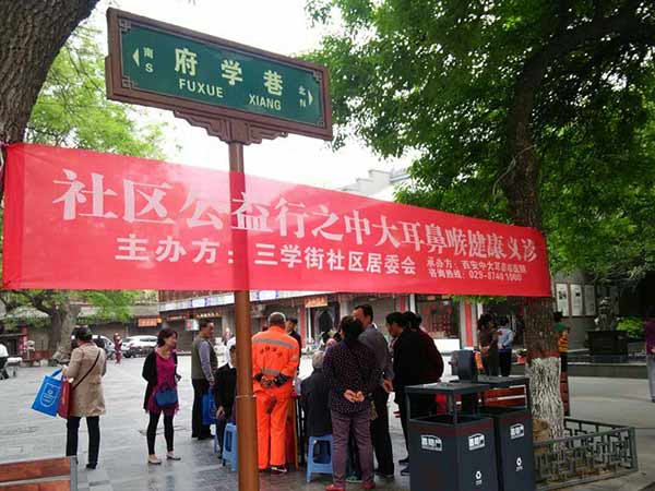 点击咨询 为进一步普及健康知识,帮助居民养成健康文明的生活方式,同时解决看病难的现状。4月13日上午,应西安市三学街社区委员会邀请,西安中大耳鼻喉医院医护人员前往碑林区三学街府学巷社区开展“健康义诊进社区”服务活动,活动受到了社区居民的大力支持和热烈欢迎。