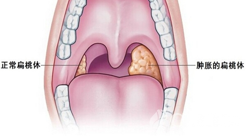 (2)扁桃体肥大影响呼吸和吞咽者(小儿鼾症的主要原因之一就是扁桃体肥大,引起睡眠期间持续性大脑不同程度缺氧,降低睡眠质量,影响学习和记忆力)。